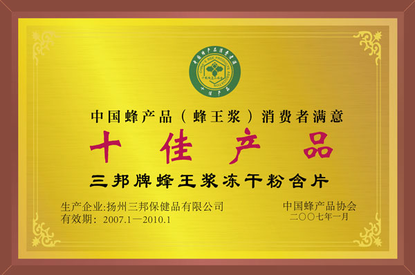 • 中國蜂產(chǎn)品消費者滿意十佳產(chǎn)品